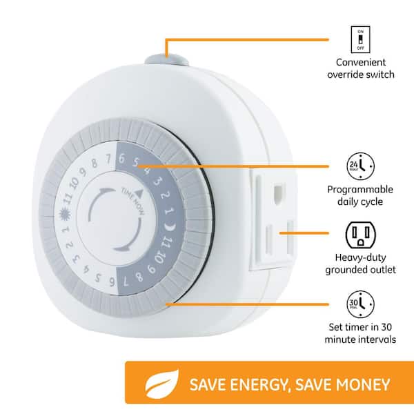 Protect Your HomeSet your lights to your schedules to help keep your home secure. HOW TO USE THE TIMER Timer ModeYou can choose Always ON or Timer mode. You can set up to 48 on/off programs a day. Then insert it into the socket and plug in your devices. HBN Mechanical Timer Plug Socket, 24 Hour Segment Programmable Energy Saving Plug-in Timer. HBN. HBN Mechanical Timer Plug Socket, 24 Hour Segmentu2026 £15.99 GLOGLOW Sart Countdown Tier Socket with USB Ports - Efficiently Control Electronics in Hoe... The red side button up means Always ON; the red button down means Timer mode, it will turn on and off according your settings. Test the timer by manual advancing it to the ON pin to see if the light you plugged into it comes on. Please be assured purchase, this timer would be a good helper for your daily life. Great for controlling lighting, heater, A/C, fans, Christmas light, greenhouse growing lighting, humidifiers, nebulizers, flow pumps for aquaria, ventilators etc. Advance it to the OFF position to verify the light turns off. Each segment represents 15 minutes. This 24 hour mechanical manis timer switch allows for quick and easy automation of electrical appliances, and this plug in timer is a robust and energy efficient solution for electrical household appliances to save energy and money on utility bills. This analoy timer has a 24-hour dial that mechanically advances as time passes. Reset the timer to the current time after testing. You can set up to 48 on/off programs a day. - Switch off office equipment like printers, copiers and coffee mechines, so they're only on the way needed. No need to worry about forgetting to turn off household appliances. - You can also use this mains timer switch for a range of other indoor automation or security purposes. So, if you're not ready to invest a lot of money in a switch, this might be the perfect option for you. Tapo Smart Plug TIMER PLUG SOCKET 24 Hour Segment Programmable Energy Saving Plug-in Switch £5.99 - PicClick UK Light Switch Surround HBN Indoor Timers Plug Mechanical 2 Prong 24-Hour Mini Lamp Timers 2 Pack, for Electrical Outlets, Fish Tank, Fans, LED Lights Here are some applications where you can use this 24 hour mains timer switch to save energy:- Switch off your modern/router and other computer peripherals overnight. --ON position means Always on; --T position means Timer mode. Our timers have a 15-month warranty. ☑ AUTOMATE YOUR HOME: Great for controlling lighting, heater, A/C, fans, Christmas light, greenhouse growing lighting, humidifiers, nebulizers, flow pumps for aquaria, ventilators, router, washing machine, etc. and turn off at 11:00 p.m.. For timers, you would set the pins from 19:00 to 23:00 at the down position. --Move the button on the side of the timer to the position for timer. When the dial reaches a pin, the light comes on and stays on until the timer advances to next pin position on the dial. For example, you can switch an LED light bulb on and off at certain times of the day to make your home occupied. ☑ USE A TIMER SWITCH TO SAVE ENERGY: You can set your own schedule for when to activate or deactivate the devices. - Place a heated towel rail on a 24 hour timer to only operate for a few hours per day (rather than 24/7). Multi PurposeGreat for controlling lighting, heater, A/C, fans, Christmas light, greenhouse growing lighting, humidifiers, nebulizers, flow pumps for aquaria, ventilators etc. ☑ WHY CHOOSE MECHANICAL TIMER: It's much harder to break any mechanical device than a digital one.Product Information