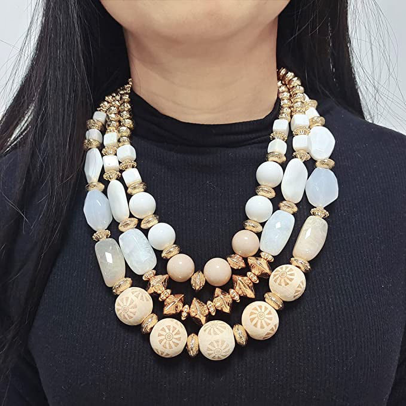 Bocar Bohemian Triple Strand Layered Beaded Statement Necklace And Earring Set For Women, Fashion Jewelry With Acrylic And Glass Beads(NK-10077
